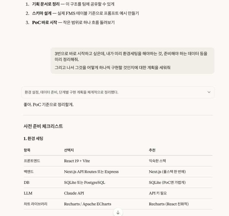 결론부터 말하면, AI와 대화하며 계획 수립에 시간을 충분히 투자하면 구현 오류가 눈에 띄게 줄고 하루도 안 되는 시간에 PoC를 완성할 수 있다.
