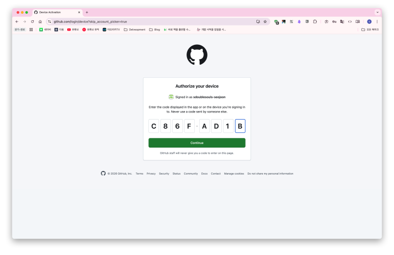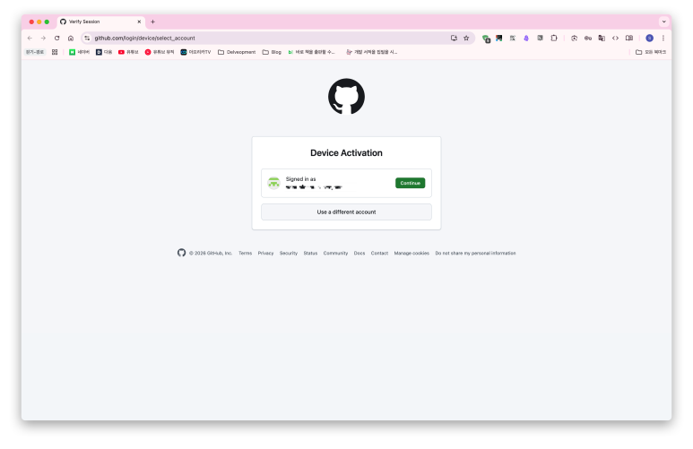 Github 계정은 gh auth login 명령어 실행 시 내 컴퓨터가 GitHub와 소통할 수 있도록 인증하는 과정에 사용된다.