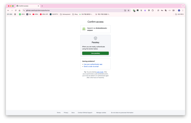 그런 후 아까 복사한 OTP를 붙여 넣은 후 권한을 부여해 주면 된다.