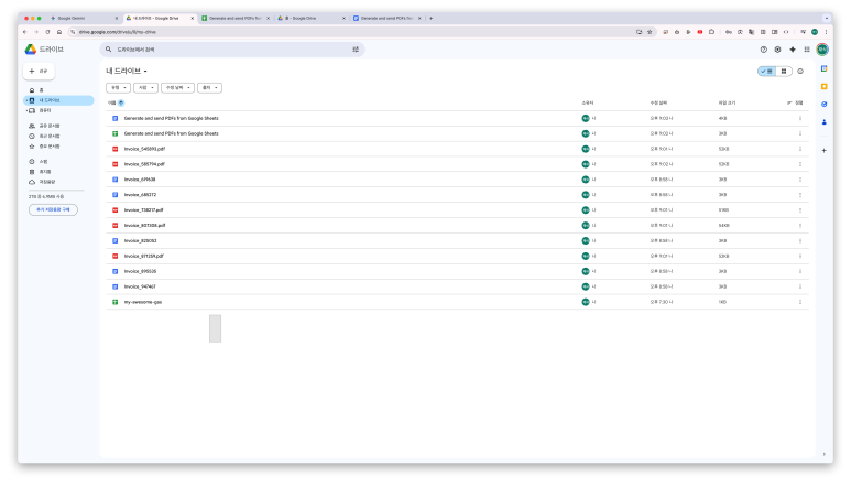 3. PDF 파일을 만들고 나면 해당 파일을 드라이브에 저장하고 Invoices 시트의 Invoice Link 에 값을 설정한다.
