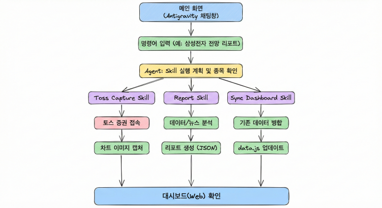 유튜브에 다음과 같은 영상이 추천이 되었다. 내용을 요약하면, 내가 할 만한 워크플로를 Antigravity skills로 만들어서 한 번의 프롬프트로 작동시키는 것이다. 각 스킬에 동작 시 고려해야 하는 몇 초 기다려, 어떤 URL을 활용해, 어떤 형태로 데이터를 만...