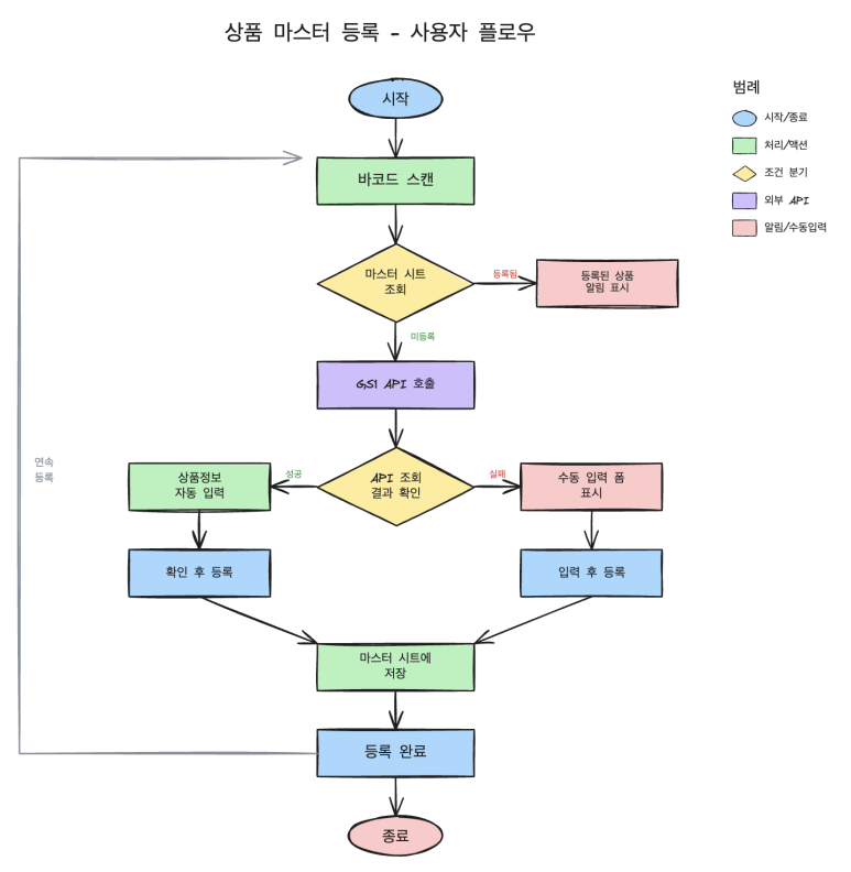 이전 글에서 상품 마스터 등록을 기획하고 개발했다. 이제는 자주 반복하는 상품에 대한 입고 프로세스를 진행해보자. 시나리오 2: 입고 처리 페르소나 홍길동(소규모 온라인 쇼핑몰 운영자)은 매주 23회 공급업체에서 물건을 받는다. 바쁠 때는 입고 기록을 미루다가 나중에 ...